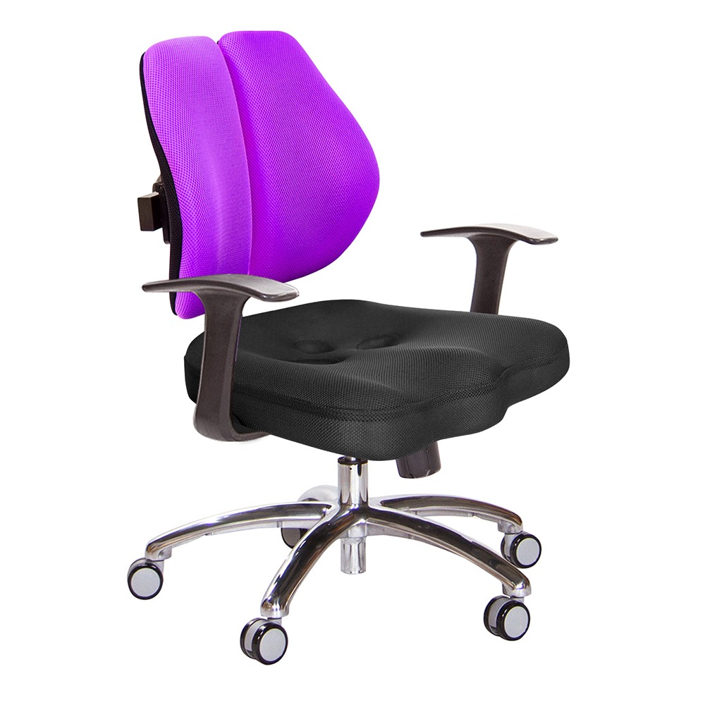 TW-2503低背款雙背椅,適合身高150~180CM使用者,椅背採用人體工學設計,造型看似烏魚子、或是像兩個人體肺的型狀,這樣的設計,是讓我們在乘坐後靠時,能更貼合我們背部,緩和脊椎的重力,降低尾椎壓力,給長時間工作者一張,聰明、會改善坐姿習慣的智慧椅。