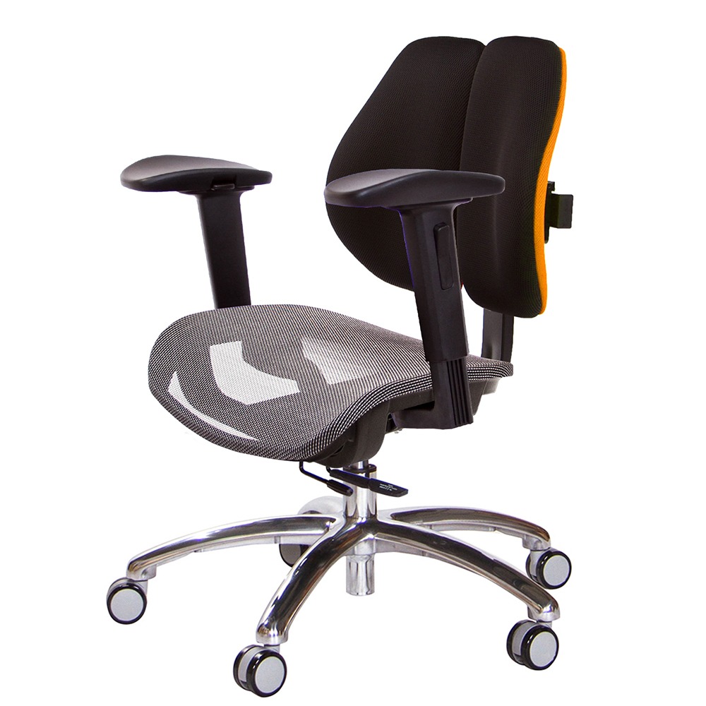 TW-2805低背款雙背椅,適合身高160~185CM使用者,椅背採用人體工學設計,造型看似烏魚子、或是像兩個人體肺的型狀,這樣的設計,是讓我們在乘坐後靠時,能更貼合我們背部,緩和脊椎的重力,降低尾椎壓力,給長時間工作者一張,聰明、會改善坐姿習慣的智慧椅。