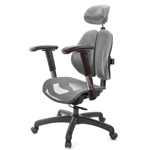 人體工學雙背設計,改善長時間座在椅子上,覺得腰部貼合度不足,有懸空或不夠沉穩的感覺,改良式的雙背背墊,除了完整包覆性外,更提供了『左右彈性』、『上下貼合』、『彈力緩衝』等特性,並有多國國際結構專利認證(台灣、德國、日本、美國、中國等),原廠專利、技術100%