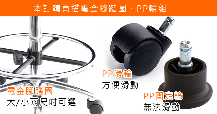 本款有兩種輪組可選,訂購前請注意,固定輪(不會滑動,輪子為平面),一般PP尼龍輪(可推動),