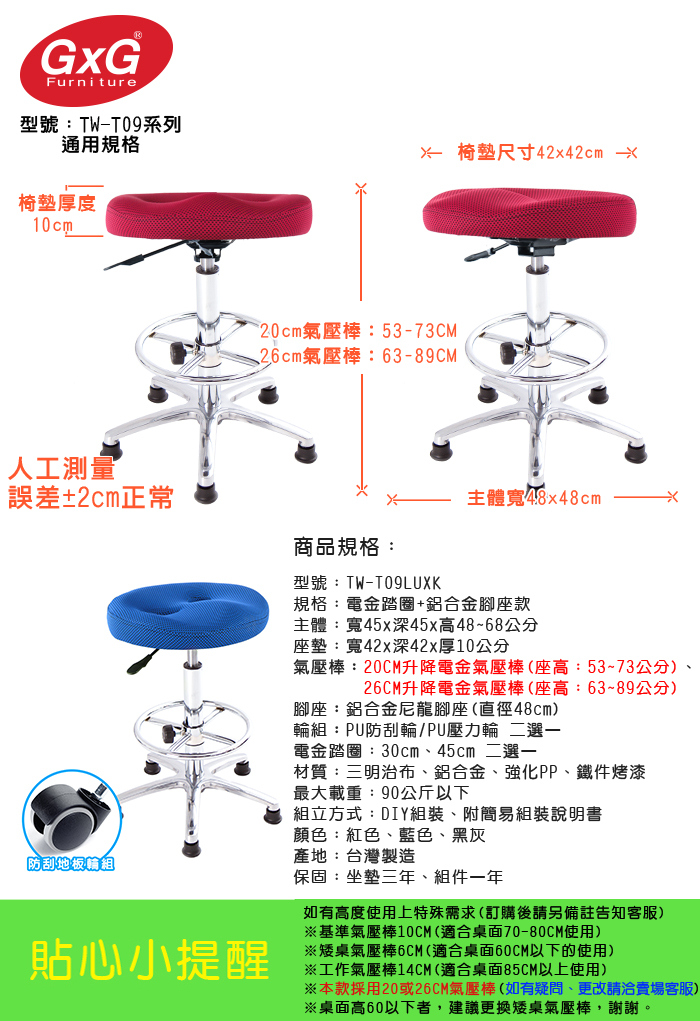 且使用台灣工廠製造,氣密度好,不易漏氣損壞,或發生氣爆的危險,安全無虞,可放心使用(訂購前請注意,座高請依照需求訂購)。