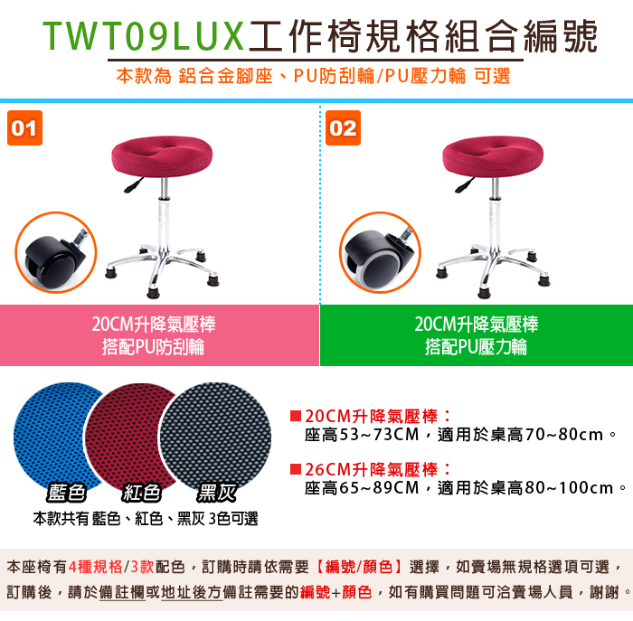 TW-T09LUX 鋁合金腳座款+PU防刮輪 工作椅