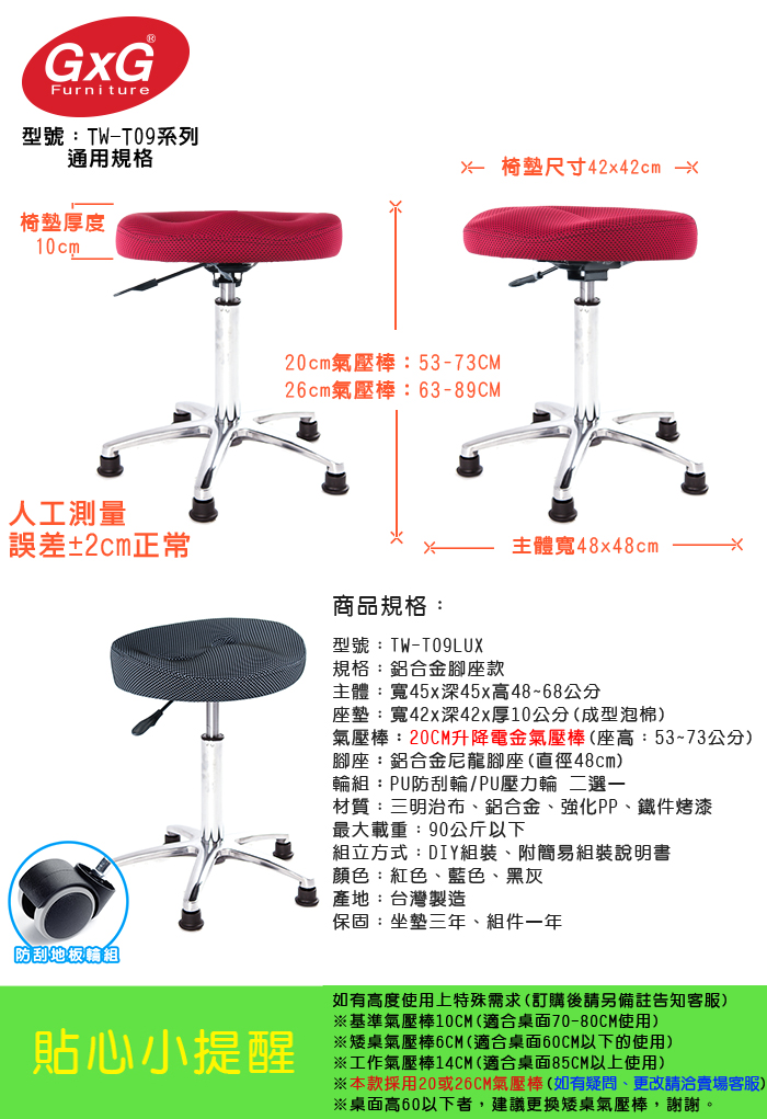 且使用台灣工廠製造,氣密度好,不易漏氣損壞,或發生氣爆的危險,安全無虞,可放心使用(訂購前請注意,座高請依照需求訂購)。