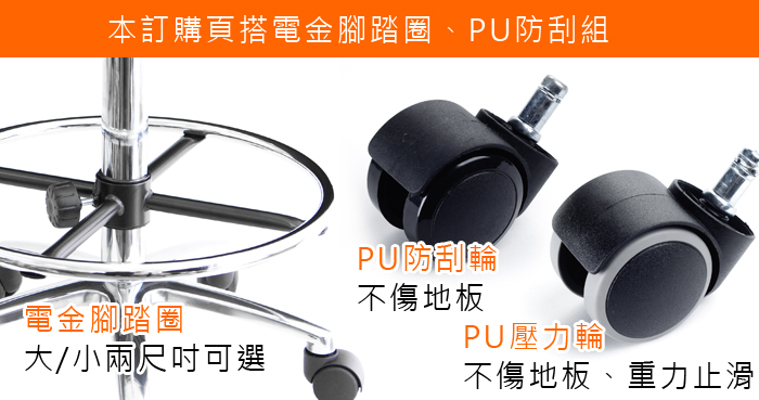 【電金腳圈、鋁合金座、PU防刮輪】