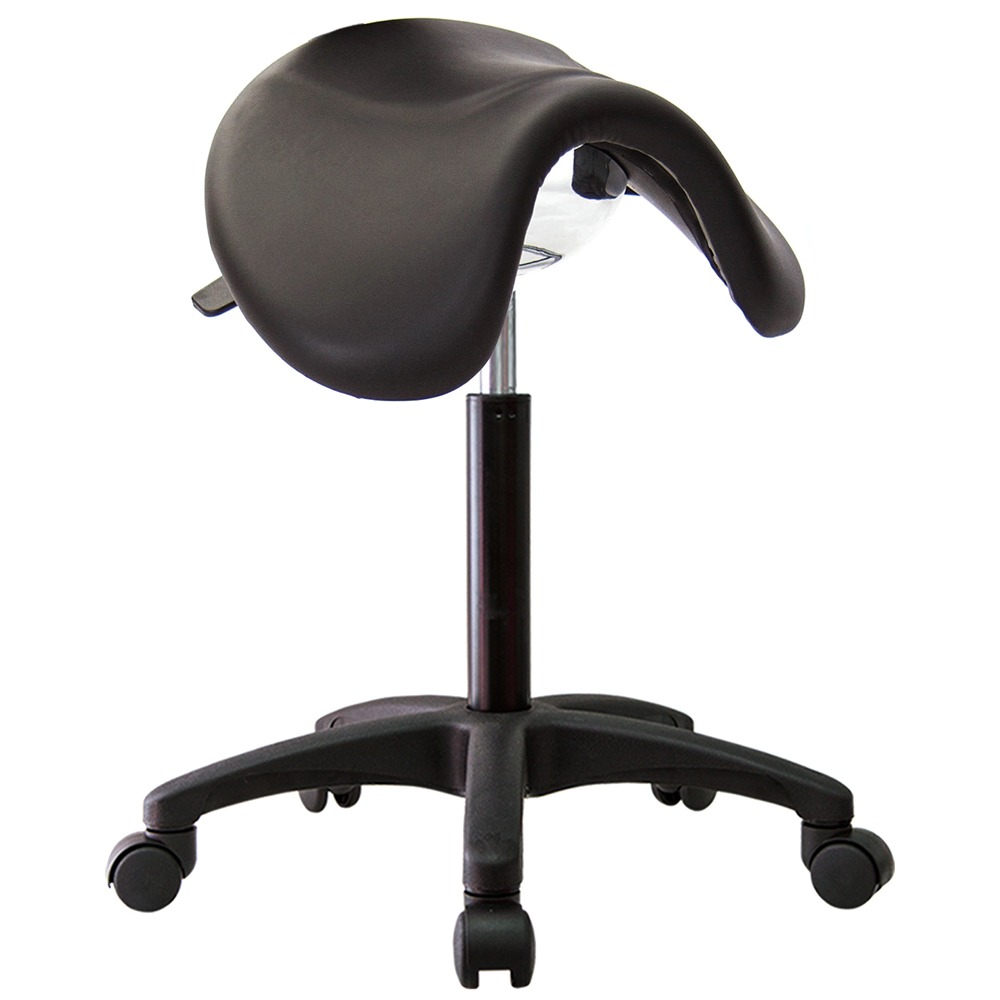 仿馬鞍造型坐墊,能大大降低久座時,臀部造成壓力,當全身重量集中在人體臀部、尾椎,一般的平面工作椅無法將壓力釋放,會累積在臀部,透過馬鞍椅工作,雙腿較集中於人體中心下盤,將累積的重量,透過雙腿平均釋放,有效減輕脊椎與臀部壓力。