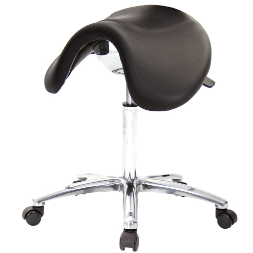 仿馬鞍造型坐墊,能大大降低久座時,臀部造成壓力,當全身重量集中在人體臀部、尾椎,一般的平面工作椅無法將壓力釋放,會累積在臀部,透過馬鞍椅工作,雙腿較集中於人體中心下盤,將累積的重量,透過雙腿平均釋放,有效減輕脊椎與臀部壓力。