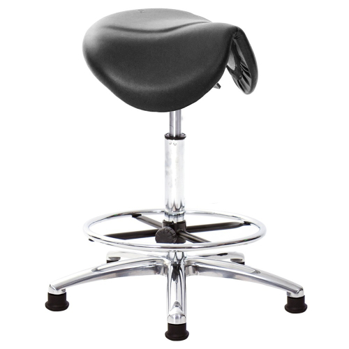 仿馬鞍造型坐墊,能大大降低久座時,臀部造成壓力,當全身重量集中在人體臀部、尾椎,一般的平面工作椅無法將壓力釋放,會累積在臀部,透過馬鞍椅工作,雙腿較集中於人體中心下盤,將累積的重量,透過雙腿平均釋放,有效減輕脊椎與臀部壓力。