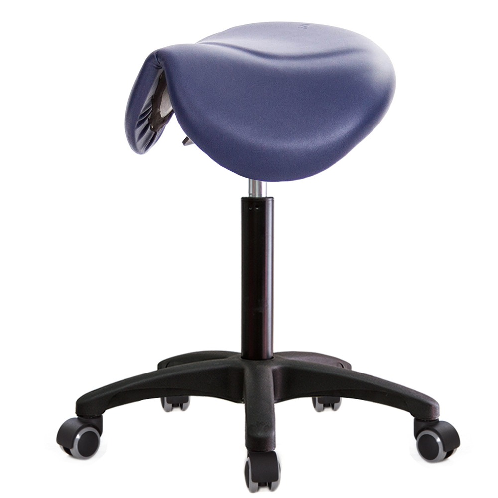 仿馬鞍造型坐墊,能大大降低久座時,臀部造成壓力,當全身重量集中在人體臀部、尾椎,一般的平面工作椅無法將壓力釋放,會累積在臀部,透過馬鞍椅工作,雙腿較集中於人體中心下盤,將累積的重量,透過雙腿平均釋放,有效減輕脊椎與臀部壓力。