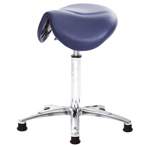 一般傳統工作椅,都屬於平面圓型的座墊,如過度側偏容易翻倒,而馬鞍型的特色就是,能乘座在座椅工作時,雙腳微夾使重心更穩,不易過度側偏摔倒的情形。