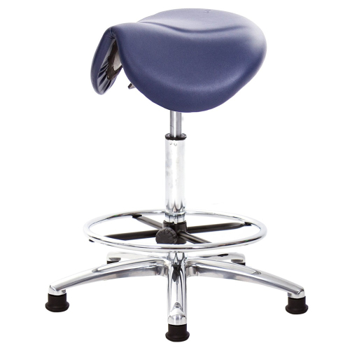 仿馬鞍造型坐墊,能大大降低久座時,臀部造成壓力,當全身重量集中在人體臀部、尾椎,一般的平面工作椅無法將壓力釋放,會累積在臀部,透過馬鞍椅工作,雙腿較集中於人體中心下盤,將累積的重量,透過雙腿平均釋放,有效減輕脊椎與臀部壓力。