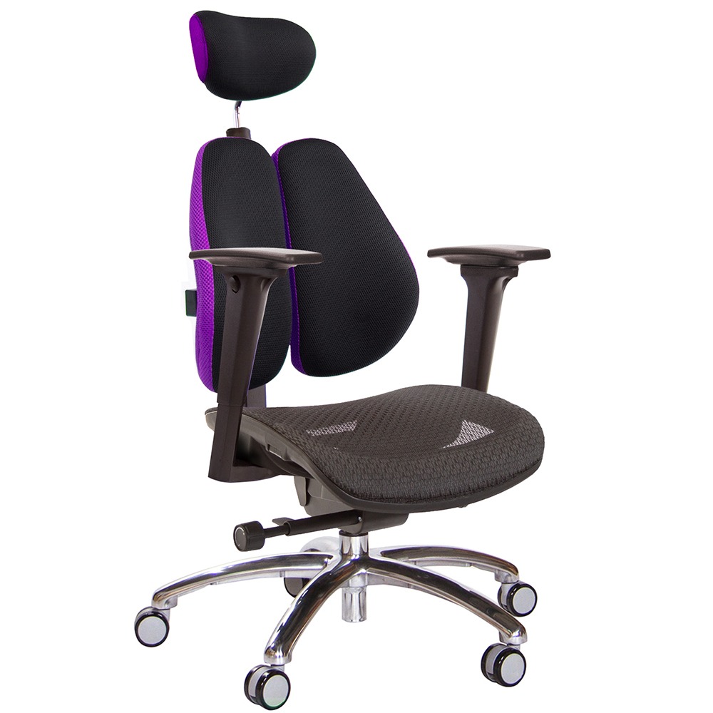 人體工學雙背設計,改善長時間座在椅子上,覺得腰部貼合度不足,有懸空或不夠沉穩的感覺,改良式的雙背背墊,除了完整包覆性外,更提供了『左右彈性』、『上下貼合』、『彈力緩衝』等特性,並有多國國際結構專利認證(台灣、德國、日本、美國、中國等),原廠專利、技術100%