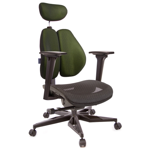 人體工學雙背設計,改善長時間座在椅子上,覺得腰部貼合度不足,有懸空或不夠沉穩的感覺,改良式的雙背背墊,除了完整包覆性外,更提供了『左右彈性』、『上下貼合』、『彈力緩衝』等特性,並有多國國際結構專利認證(台灣、德國、日本、美國、中國等),原廠專利、技術100%