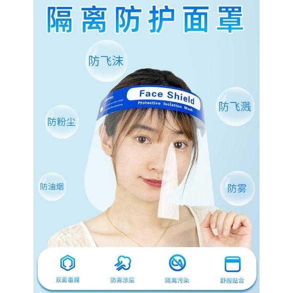 防疫必備!!!!! 全臉防護,遠離飛沫。 面罩加大,可重複使用。 高透光材質,防飛沫防油濺,視線零阻擋。