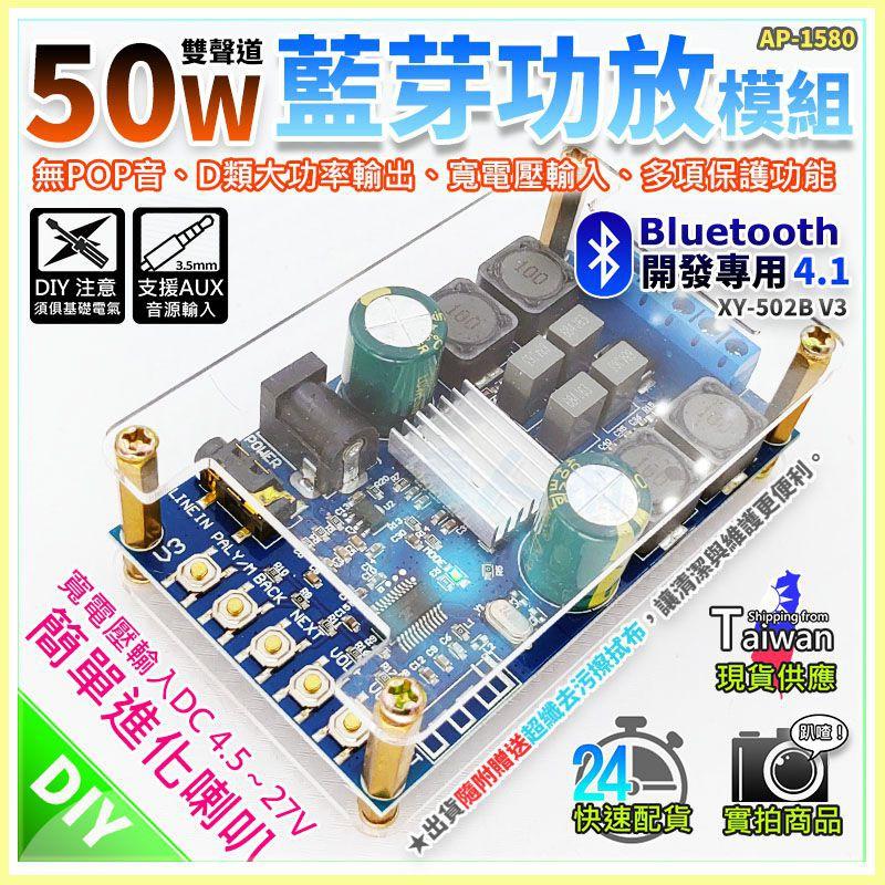 【W85】DIY 50W《 藍芽功放模組》XY-502B V3 雙聲道50W 寬電壓 D類大功率【AP-1580】