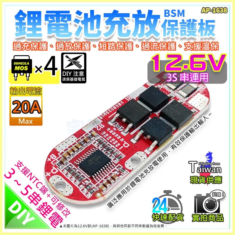 【W85】 DIY《12.6V鋰電池保護 》3串 20A 鋰電池充放保護板 4個MOS 另有4/5串 【AP-1638】