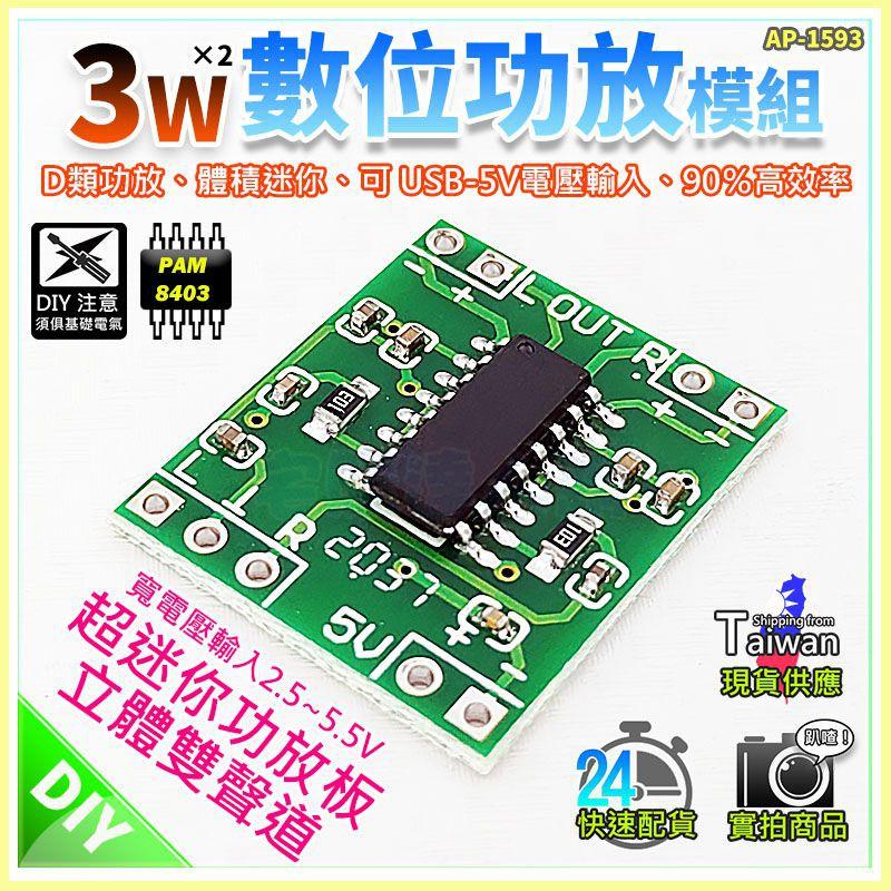 【W85】DIY 3W《 數位功放模組》PAM8403 D類功放 體積迷你 USB~5V電壓 雙聲道【AP-1593】