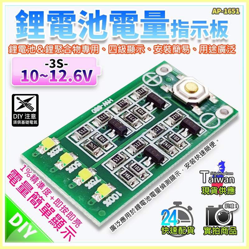 【W85】DIY 3串《鋰電池電量指示版》12.6V 4級顯示 鋰電池&離聚合物 安裝簡易 【AP-1651】