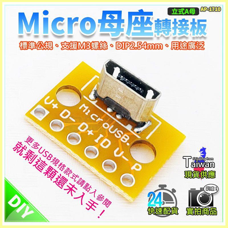 現貨【W85】 DIY《立式 Micro母座 》Micr轉DIP USB2.0轉接板 2.54MM插針【AP-1710】