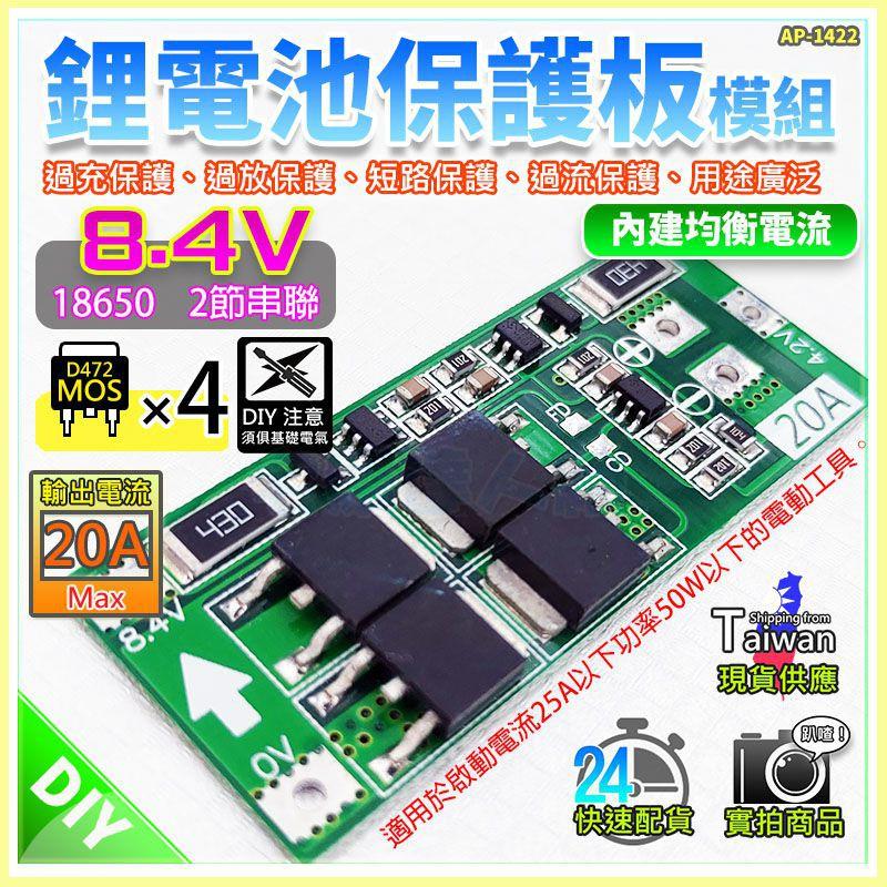 【W85】 DIY《 8.4V鋰電池保護 》2串18650 鋰電池保護板 4MOS 20A 帶均衡版【 AP-1422】