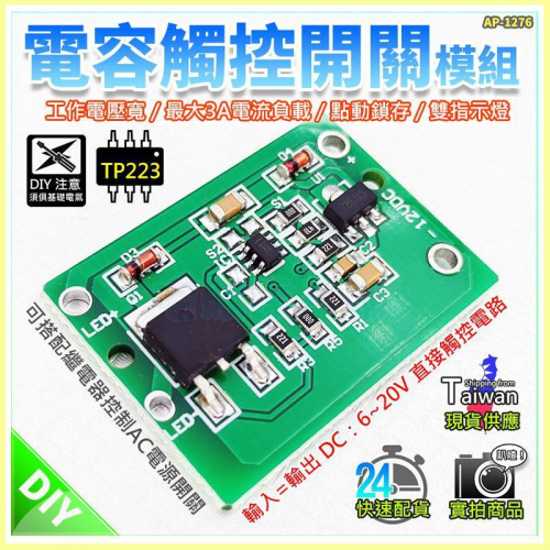 現貨【W85】 DIY 《 12V 電容式觸控模組》TTP223 電容觸摸模組 3A 雙指示燈 【AP-1276】