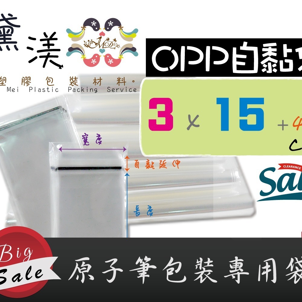 『原子筆包裝專用袋3*15+4cm』透明自黏包裝袋 自黏塑膠袋 (可批發客製尺寸印刷LOGO)黛渼QG0315