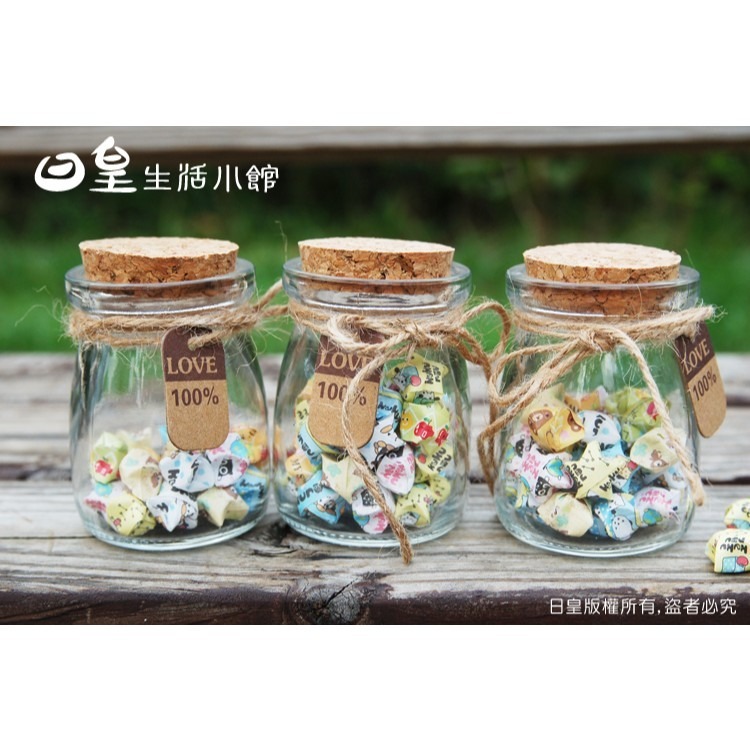 【描述】透明玻璃加上zakka風格的軟木塞,可用來做喜糖瓶、許願瓶、裝幸運星、花瓶、微景觀造景, 是一款用途很廣的小瓶子~