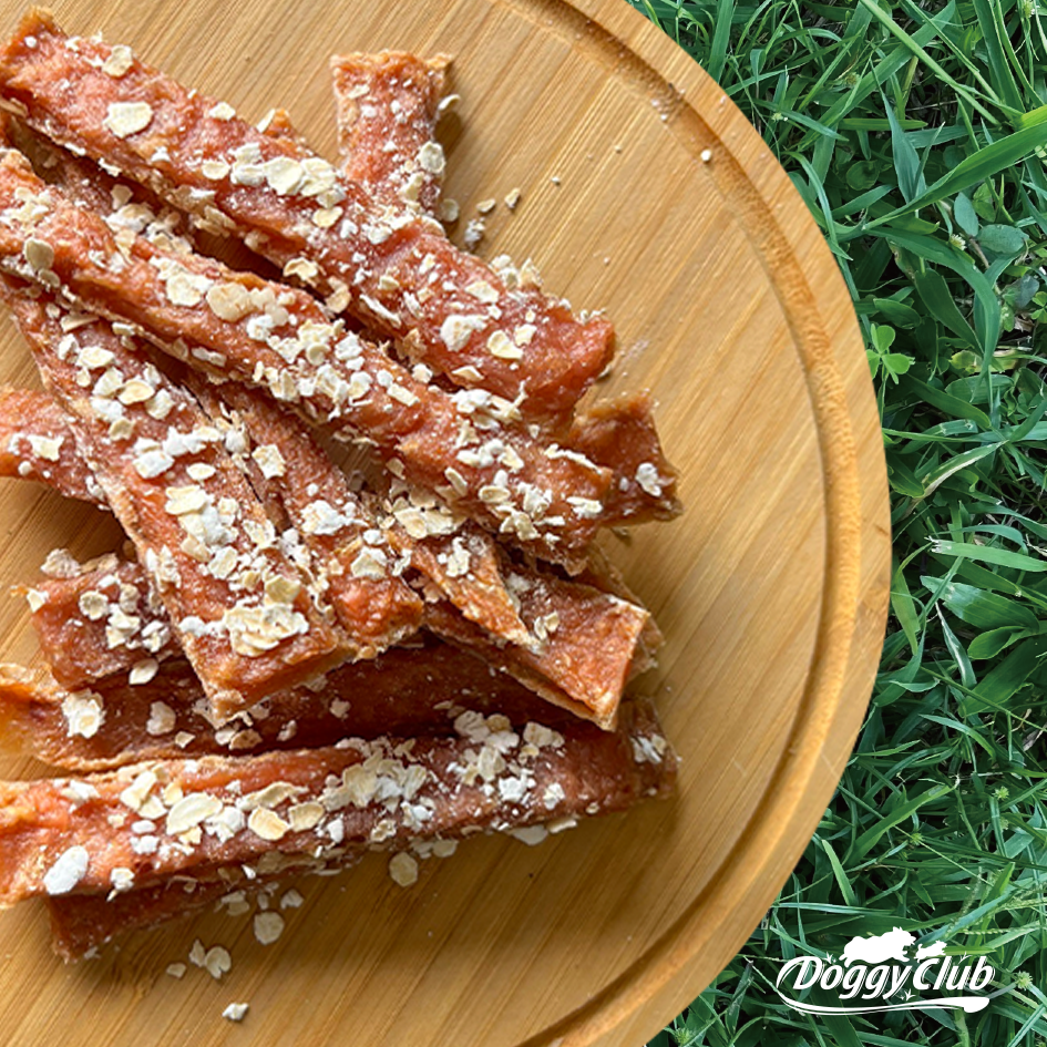 燕麥片含有豐富的水溶性纖維,熱量含量也低,是優質的澱粉來源搭配雞胸肉烘烤14小時以上對毛小孩來說是很健康的零食