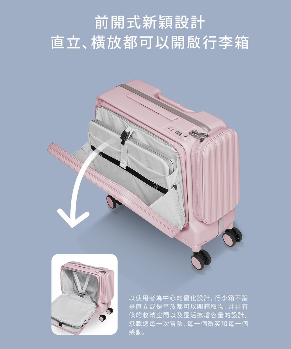 以使用者為中心的優化設計,行李箱不論是直立或是平放都可以開箱取物,井