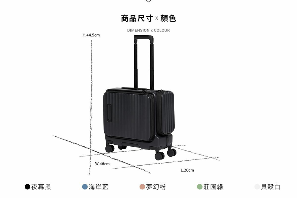 尺寸 :19 吋(46 x 20 x 44.5 cm)/可登機