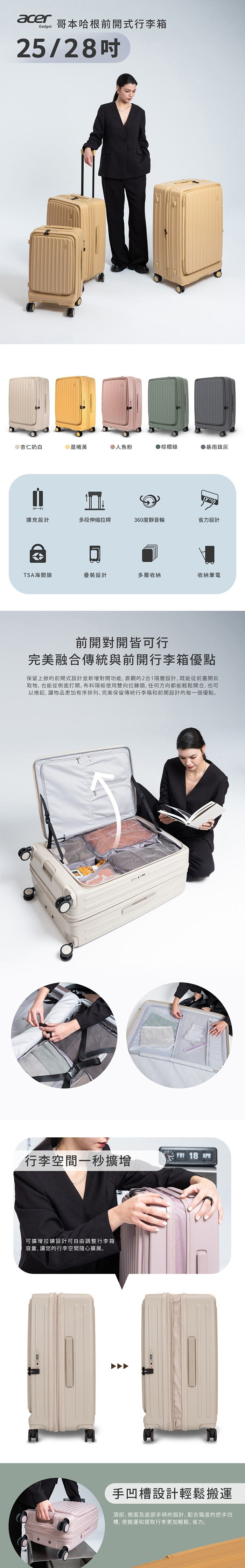 哥本哈根前開式行李箱系列採用1+2裝箱策略,無論是20吋、25吋,還是28吋行李箱,都能輕鬆疊裝。即使是小空間,也能輕鬆收納,無論是出國旅行還是短途出差,隨心所欲裝入行李。