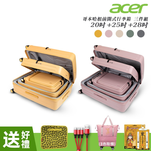 【Acer Fashion】哥本哈根前開式行李箱20+25+28吋-贈好禮