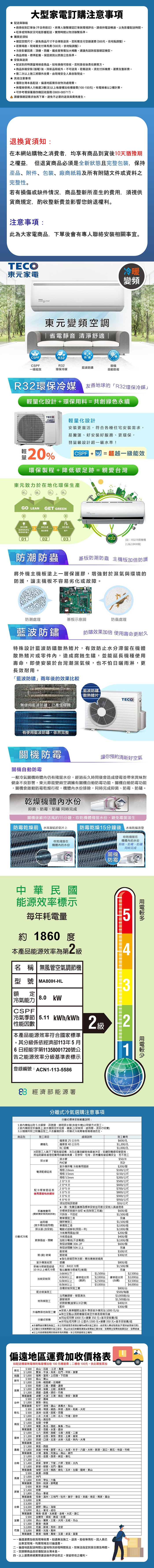 【TECO 東元】 13-14坪 R32二級變頻冷暖分離式空調(MA/MS80IH-HL)(含基本安裝)