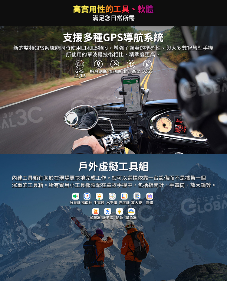 導航:GPS (L1+L5 雙頻)/格洛納斯/伽利略/北斗衛星/支援數位羅盤