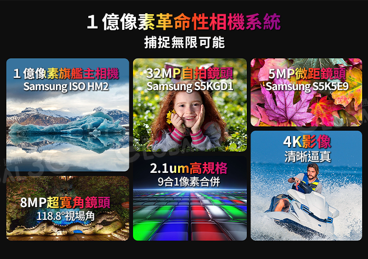 後鏡頭:1億像素 三星 HM2 傳感器、0.7µm、6片鏡頭
