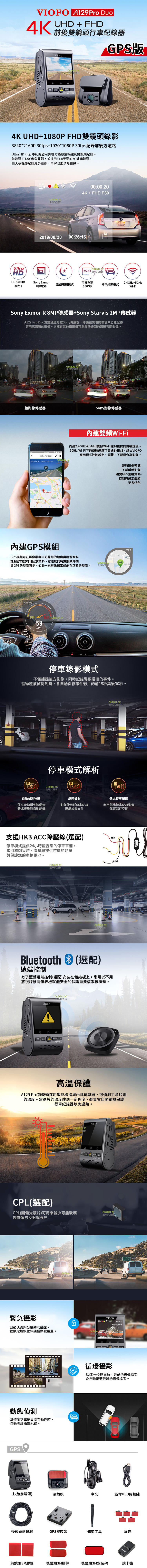 VIOFO A129 Pro Duo 4K 前後雙鏡頭 行車紀錄器 GPS版 4K高畫質解析度 停車監控 行車記錄器