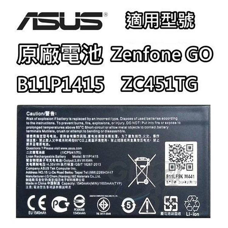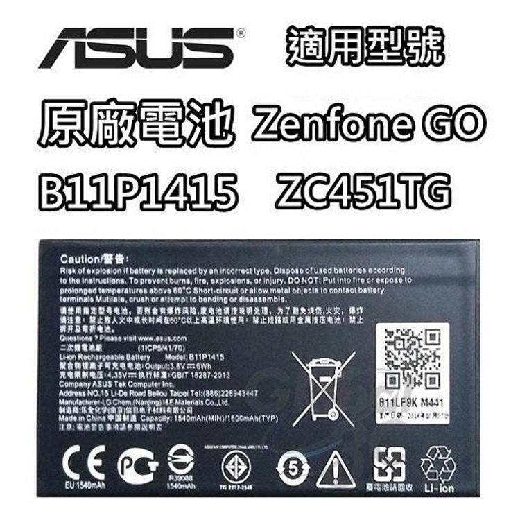 電池型號:ZenFone Go ZC451TG 4.5吋機 Z00SD 原廠電池