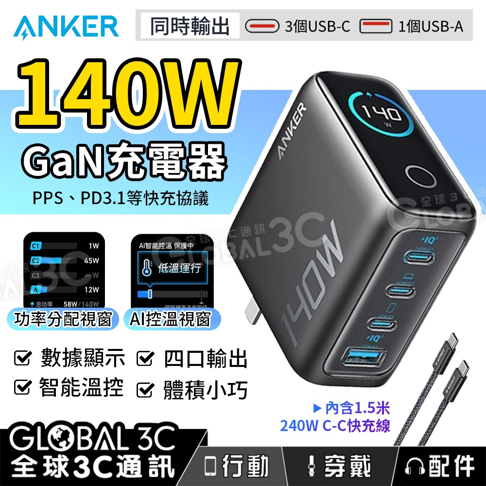 名稱 : Anker Zolo 140W四口氮化鎵充電器