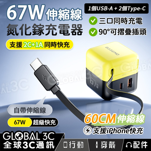 接口:USB-A+TYPE-C+自帶伸縮線(Type-C)