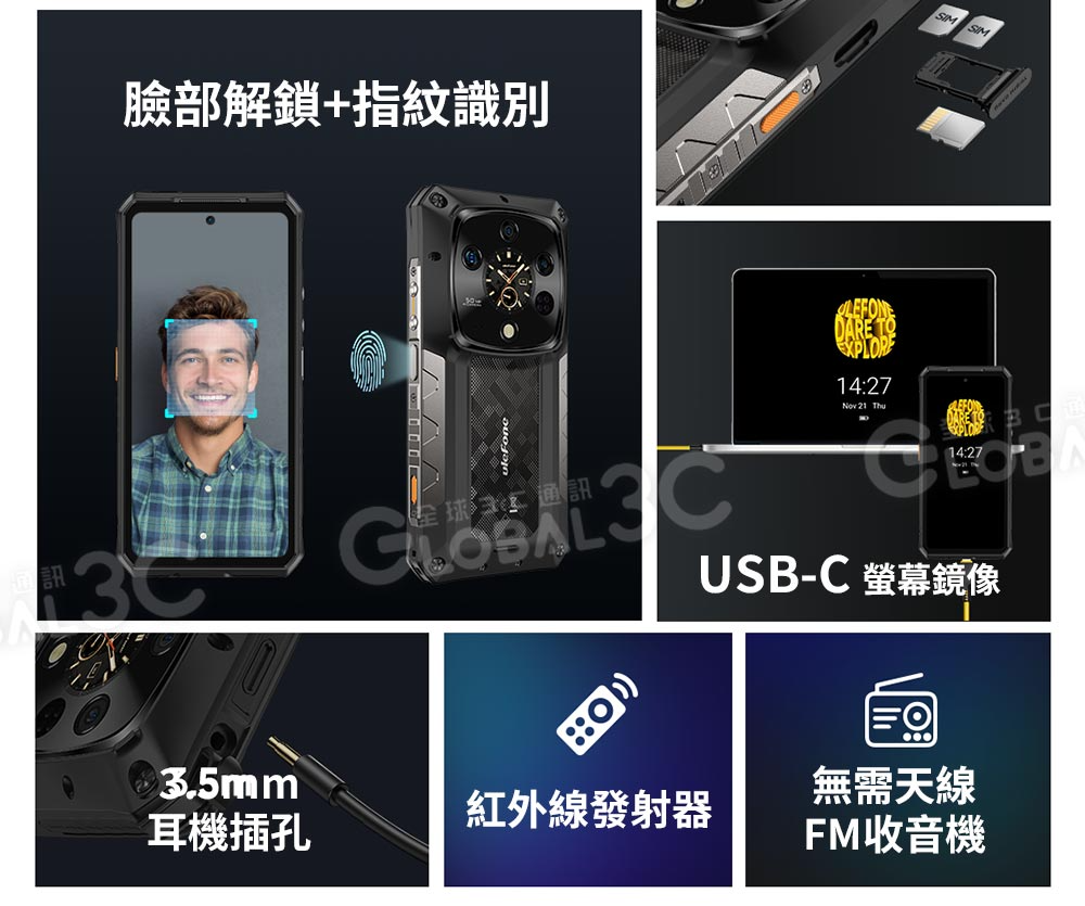其他功能 : 面部解鎖、指紋辨識、自定義快捷鍵、紅外線發射器、水下相機