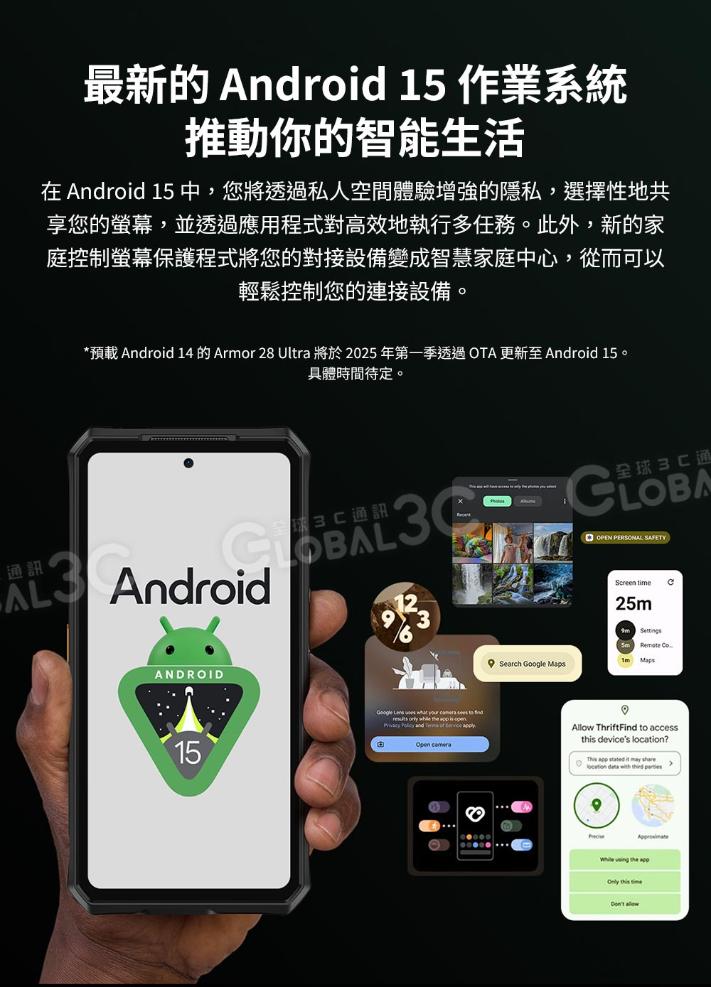 ➤全新升級的Android 15系統,確保隱私生活更安全