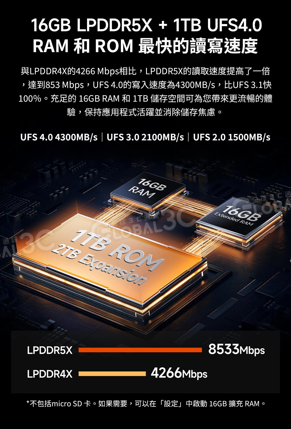 儲存 : 32GB RAM(16GB+16GB虛擬擴充)+1TB(另可插2TB的TF卡擴充)