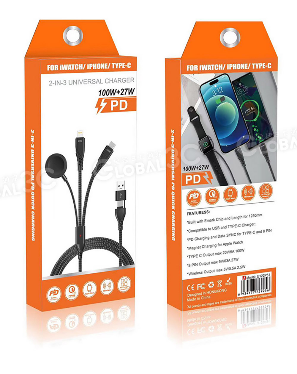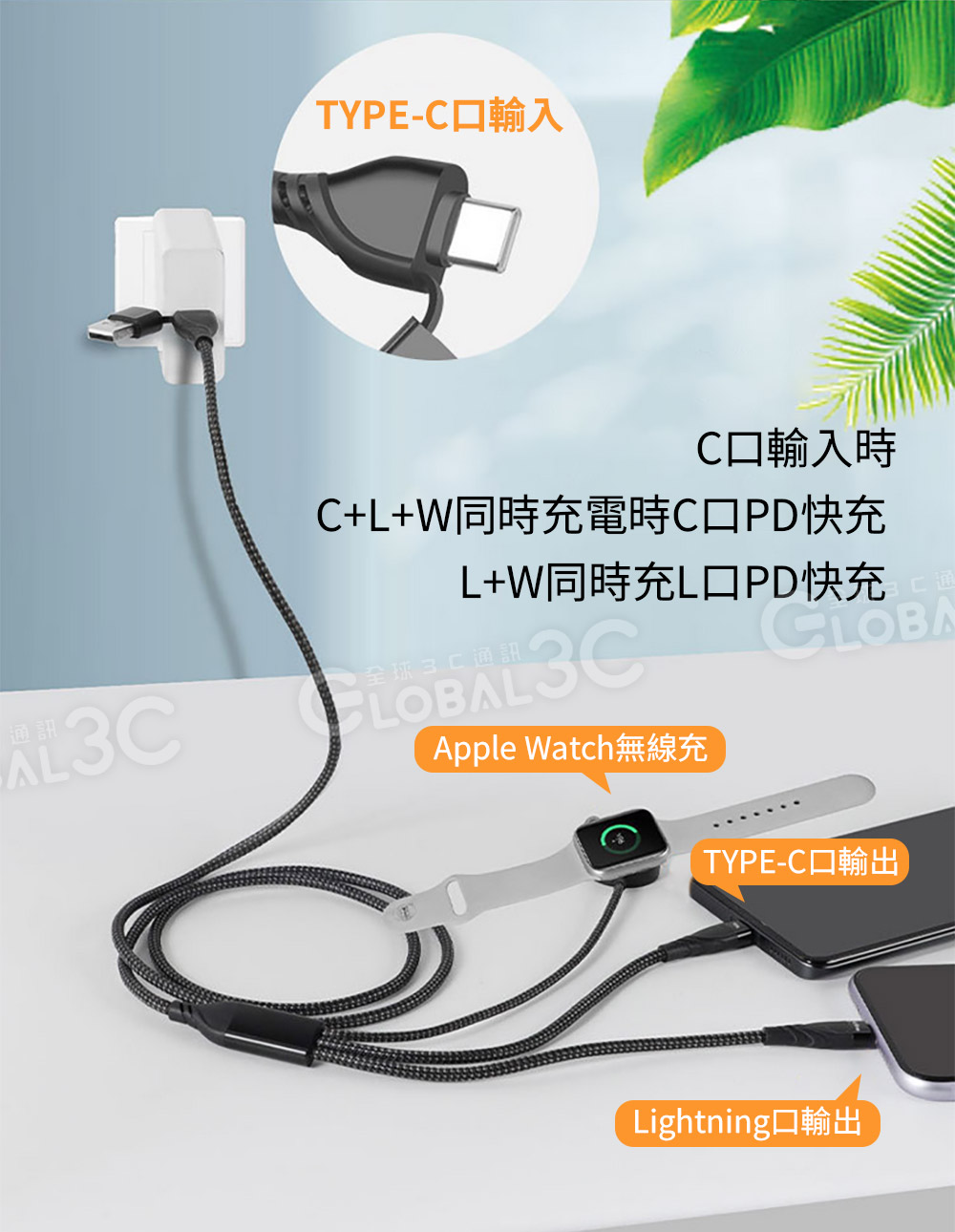 ➤TYPE-C口輸入,TYPE-C+lightning+W同時充電時TYPE-C口PD,lightning+Apple Watch同時充lightning口PD
