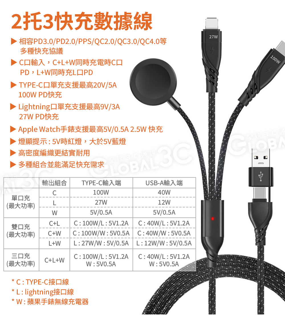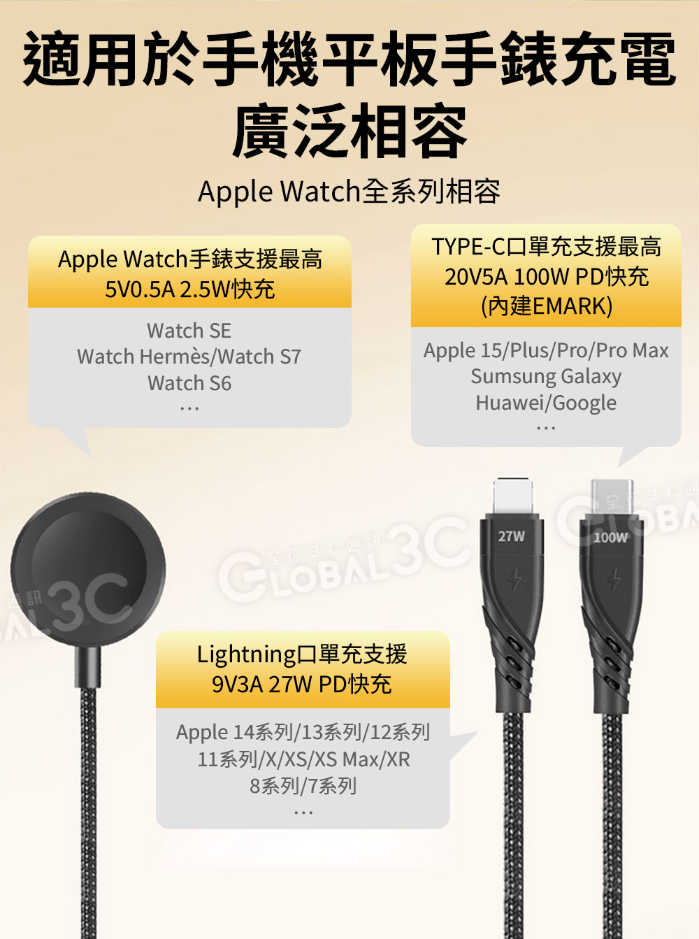 輸出接口 : TYPE-C/Lightning/Apple Watch無線充