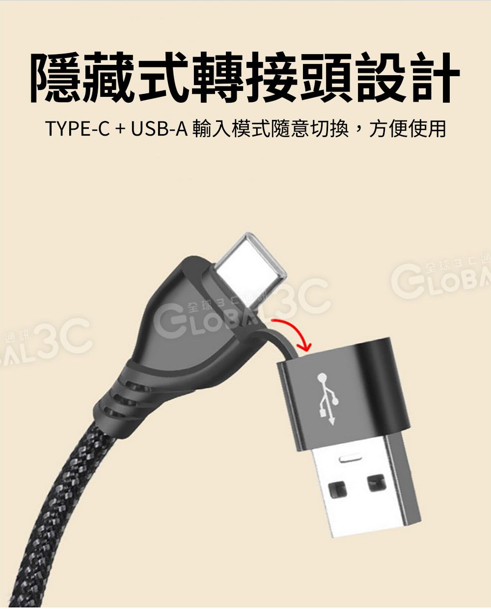適配充電頭 : 適配USB口和TYPE-C口的充電器