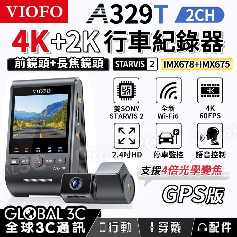 VIOFO A329T 2CH 雙鏡頭行車記錄器 (4K前鏡頭+2K前長焦鏡頭)