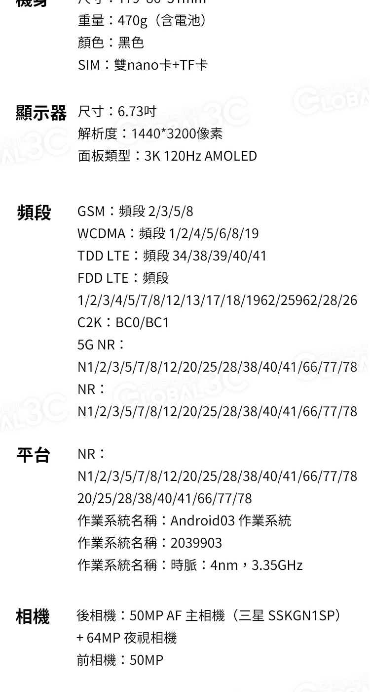 處理器:8 Core Mediatek Dimensity 8300 up to 3.35GHz