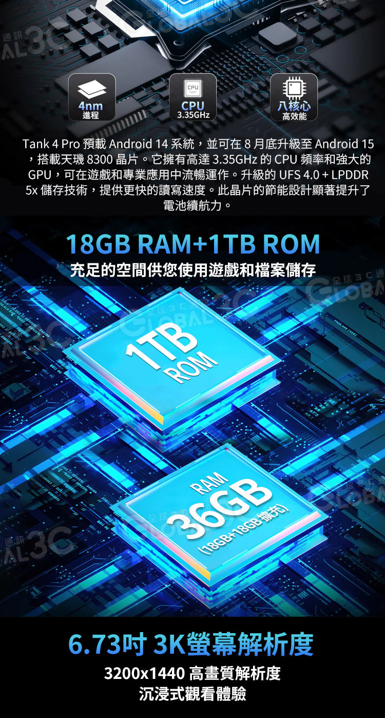 ➤36GB RAM(18GB虛擬擴充) + 1TB ROM,告別遊戲卡頓和容量不足