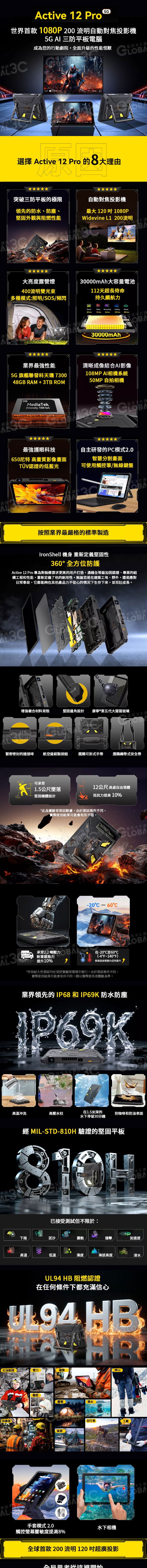 Blackview Active 12 Pro 5G 投影機 三防平板
