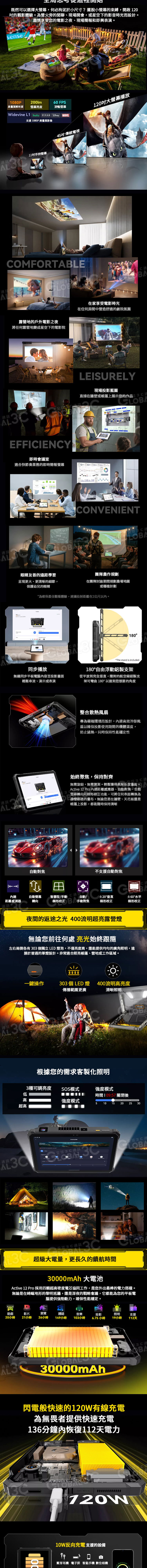 ➤30000mAh大電量,同時可當作行動電源,為其他3C充電