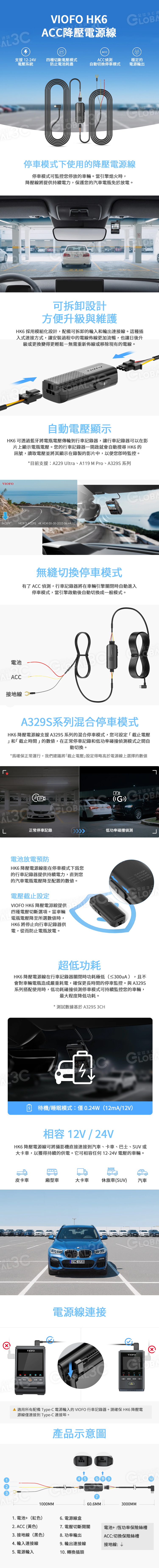 注意:HK6降壓線目前僅支援VIOFO A229 Ultra、A119 M Pro、A329S等後續新款系列行車記錄器